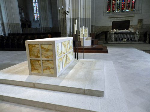 Le nouvel autel et la cathèdre. Photo :  Sophie Nouaille