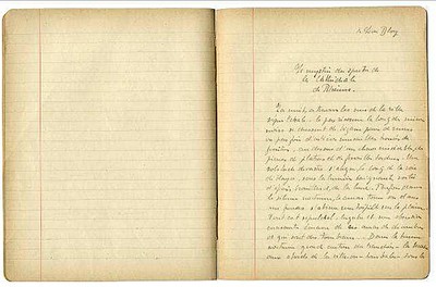 « – O lamentable écrin – basilique sacrée de la France, qu’un peuple magnifie en des pierres sublimes – je te dois de te pleurer – ô vaincue ! car tu n’es plus que le spectre de ton âme aux mille voix – éternellement silencieuse gardienne de tes gloires passées ! ». Le Cahier contient entre autres écrits la première ébauche du premier livre publié de l’écrivain, Notre-Dame de Reims. Il y évoque les destructions de la guerre sur la cité des sacres et le martyre de la cathédrale de son enfance. Pour la première fois, ses mots et son manuscrit sont exposés au public, dans une exposition poignante : Plumes des tranchées, les écrivains et la Grande Guerre sur le front de Champagne présentée à la bibliothèque Carnegie: www.journeesdupatrimoine.culture.fr