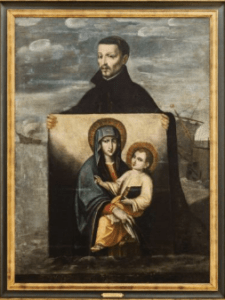 C’est en 1565, après la mort de sa femme, que saint François de Borgia (1510- 1572) devint le 3è supérieur général des jésuites. Afin de promouvoir le culte marial, et avec l’accord du pape Pie V, il décida de faire réaliser de multiples copies de la Salus comme support de mission. C’est ainsi que de nombreuses copies de cette fameuse icône miraculeuse – écrite par saint Luc, selon la tradition- furent envoyées dans le monde entier(3). Cette icône devint ainsi un véritable outil d’évangélisation, et, de ce fait, l’un des fleurons de l’art jésuite, au point que certains artistes se spécialisèrent dans la reproduction de la Salus(4).