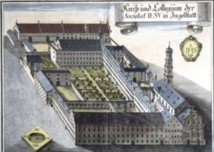 Le collège d’Ingolstadt (Jesuitenkolleg), établissement scolaire et universitaire jésuite situé en Bavière (Allemagne), fut ouvert en octobre 1556, à la demande conjointe du duc de Bavière Guillaume IV, adversaire acharné de la Réforme, et du pape Paul III. Le saint et docteur de l’Église jésuite Pierre Canisius (1521-1597) y fut enseignant, puis recteur de l’Université d’Ingolstadt, mais aussi catéchiste, écrivain et missionnaire. Il put ainsi y diffuser les Litanies de Lorette.