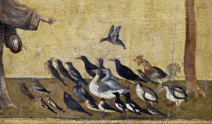 Giotto di Bondone (1266-1337), La prédication de saint François aux oiseaux, 1297-1299, (détail du retable de lastigmatisation) Paris, musée du Louvre © Sailko, wikmedia commons
