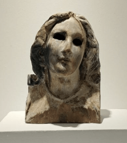 Moulage de la tête de la Vierge atomisée de la cathédrale d’Urakami (faubourg de Nagasaki) Modèle original en bois, Espagne début du XXème siècle.