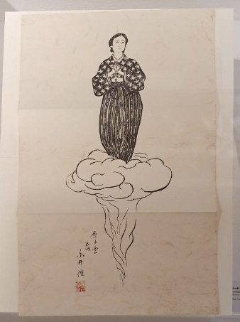 Nous sommes en présence d’une figure étonnante, dans la veine du courant artistique Nihonga  apparu durant l’ère Meiji, comme un pont entre l’Orient et l’Occident. L’essence spirituelle du  sujet, exprimée par le tracé sans repentir dans un geste rapide et fluide, est à la manière Zen.  Pourtant, le nuage, thème cher aux artistes chinois et japonais, nous amène doucement vers  l’inspiration occidentale de cette œuvre :