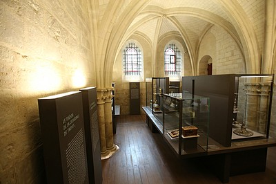 Confié à un architecte du patrimoine, le réaménagement de cet espace avait pour objectif d’être respectueux de la salle basse voutée du XIIIème dans laquelle le Trésor serait installé et de proposer une présentation aérée et hiérarchisée des objets. La contrainte principale étant son exiguïté.