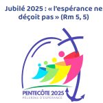 Le service de communication donne à Narthex.fr ces explications : « Ce logo en pièce jointe a été travaillé par notre service de communication en vue du rassemblement diocésain « Pèlerins d’Espérance – Pentecôte 2025 ». Durant cette journée Mgr Dognin, évêque de Quimper et Léon, proclamera les nouvelles orientations diocésaines. Les éléments du logo original ont été repris afin d’inscrire cette journée dans la démarche jubilaire. » Ce que montrent la reprise du dessin central, et les inscriptions « Pentecôte 2025 »- en grand- et « Pèlerins d’Espérance », en plus léger et petits caractères.