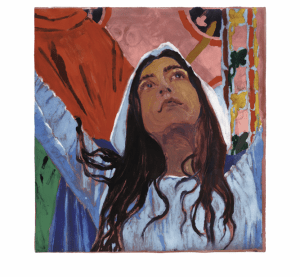 L’affaire fait grand bruit puisqu’il s’agit d’installer des vitraux contemporains en déposant des grisailles de Viollet le Duc, ce qui ne s’imposait pas après la monumentale, coûteuse, et tout à fait réussie, restauration de l’ensemble de l’édifice. Sur le thème de la Pentecôte, Claire Tabouret, représentante de la génération très nombreuse du renouveau figuratif s’impose à nos yeux par son sens si personnel de la couleur encore plus marquée dans les esquisses, au demeurant ! Prenant le parti d’une illustration littérale des Actes des Apôtres, la peintre dresse les figures de Marie (fig. 1) et des apôtres (fig. 2),