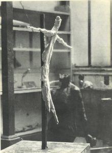Si l’Eglise, autant dans sa hiérarchie que dans ses fidèles, ne sort guère grandie de cette histoire qui priva l’œuvre de son véritable lieu pendant près de 20 ans, une photographie (fig.4) du bronze dans le petit jardin de l’atelier de la sculptrice avenue de Chatillon (Paris 14e) comme l’émouvant cliché (fig.5) de Germaine Richier interrogative à côté de son œuvre (le jour de son remariage, l’année sa mort prématurée), mettent en valeur le mystère d’humanité, et de divinité de cette œuvre qui « la ravissait autant qu’elle l’épouvantait », selon les mots de son assistante Claude Mary.